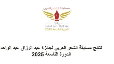 نتائج مسابقة الشعر العربي لجائزة عبد الرزاق عبد الواحد الدورة التاسعة 2025 يعلن مركز ذرا للدراسات والأبحاث بباريس أنه تم…