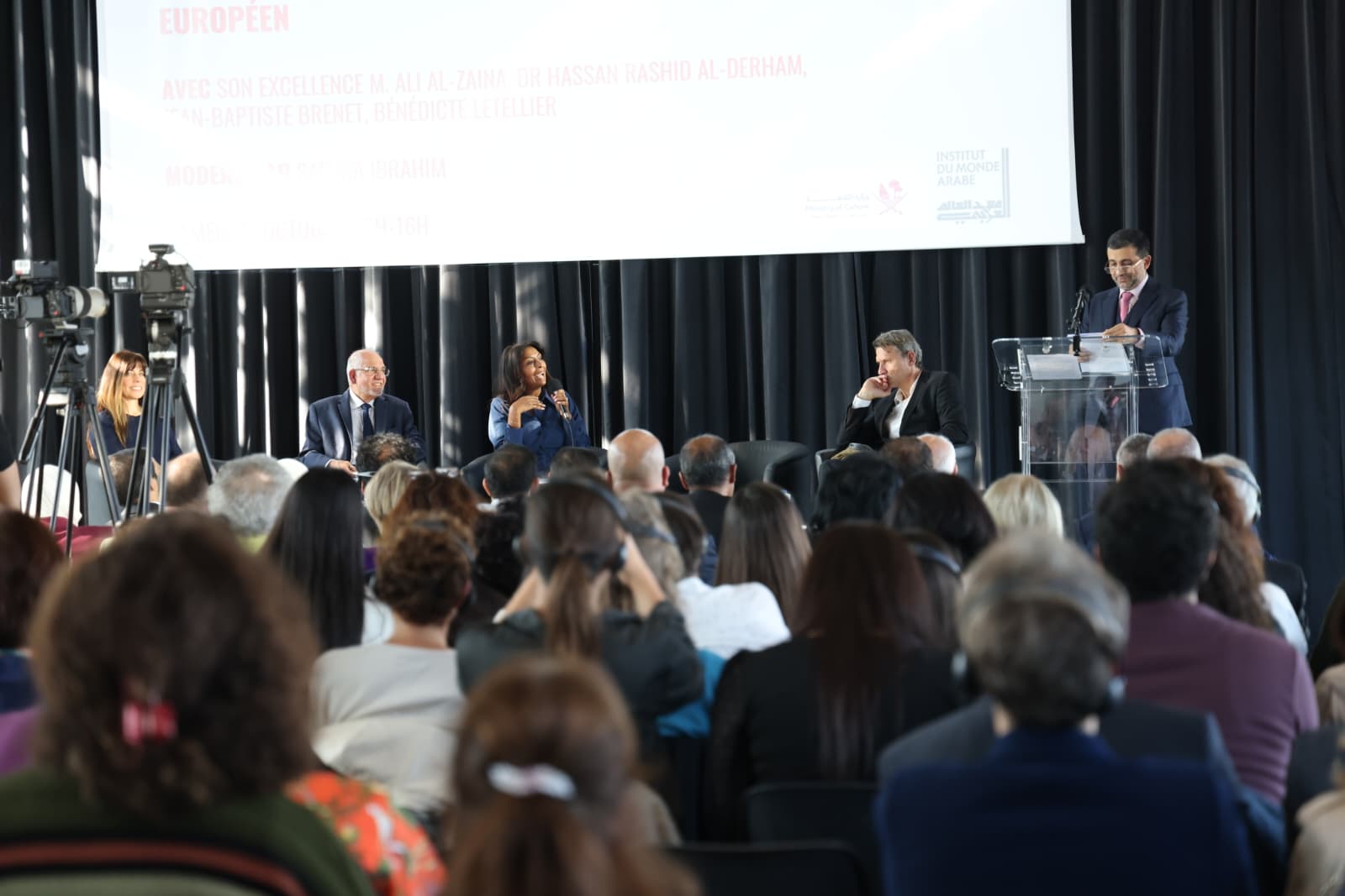 تحدث سعادة الأكاديمي والدبلوماسي القطري علي زينل عن سبعة مقومات أساسية لإقامة حوارٍ عربي–أوروبي قابلٍ للاستمرار، من أبرزها الحوار المتبادل، والاحترام، والندية، والتوازن، والانفتاح، والتسامح، والدعم المؤسسي، والإعلام، والتركيز على القيم المشتركة. كما ركّز على الدور المميز للمرأة القطرية، مؤكدًا أنها تبوأت مكانة تليق بها في المجتمع إذ تقلدت مناصب مهمة في مختلف القطاعات. وانتقد الممثل الدائم السابق لدولة قطر لدى منظمة اليونسكو (2001–2020) الصورة النمطية التي روّج لها الإعلام والأفلام الغربية عن العرب، كما انتقد المواقف السلبية للإعلام الغربي تجاه تنظيم قطر لمونديال 2022، مشيرًا إلى أن تلك المواقف تستند إلى مفاهيم خاطئة يجب تصحيحها. ودعا الحاضرين إلى التعرف أكثر على بلاده، مثنيًا على الاطلاع الواسع الذي يتمتع به مدير المعهد جاك لانغ على ثقافة ومعالم وتراث هذه الدولة الخليجية.