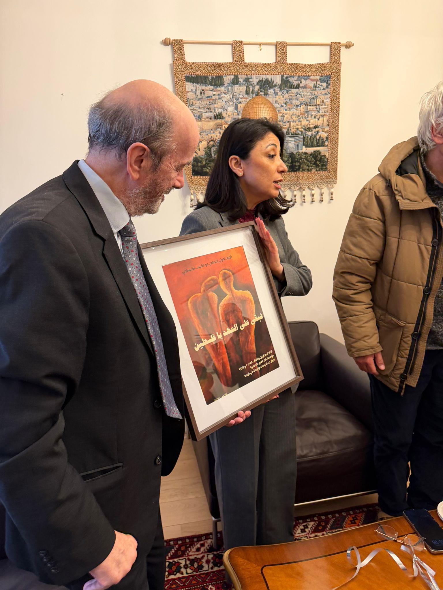 أعضاء الوفد، كل بدوره، عبّروا عن تضامنهم وتجديد دعمهم لسعادة السفيرة وللشعب الفلسطيني، مؤكدين أن هذا الموقف راسخ لديهم وليس مرتبطاً بمناسبة معينة.