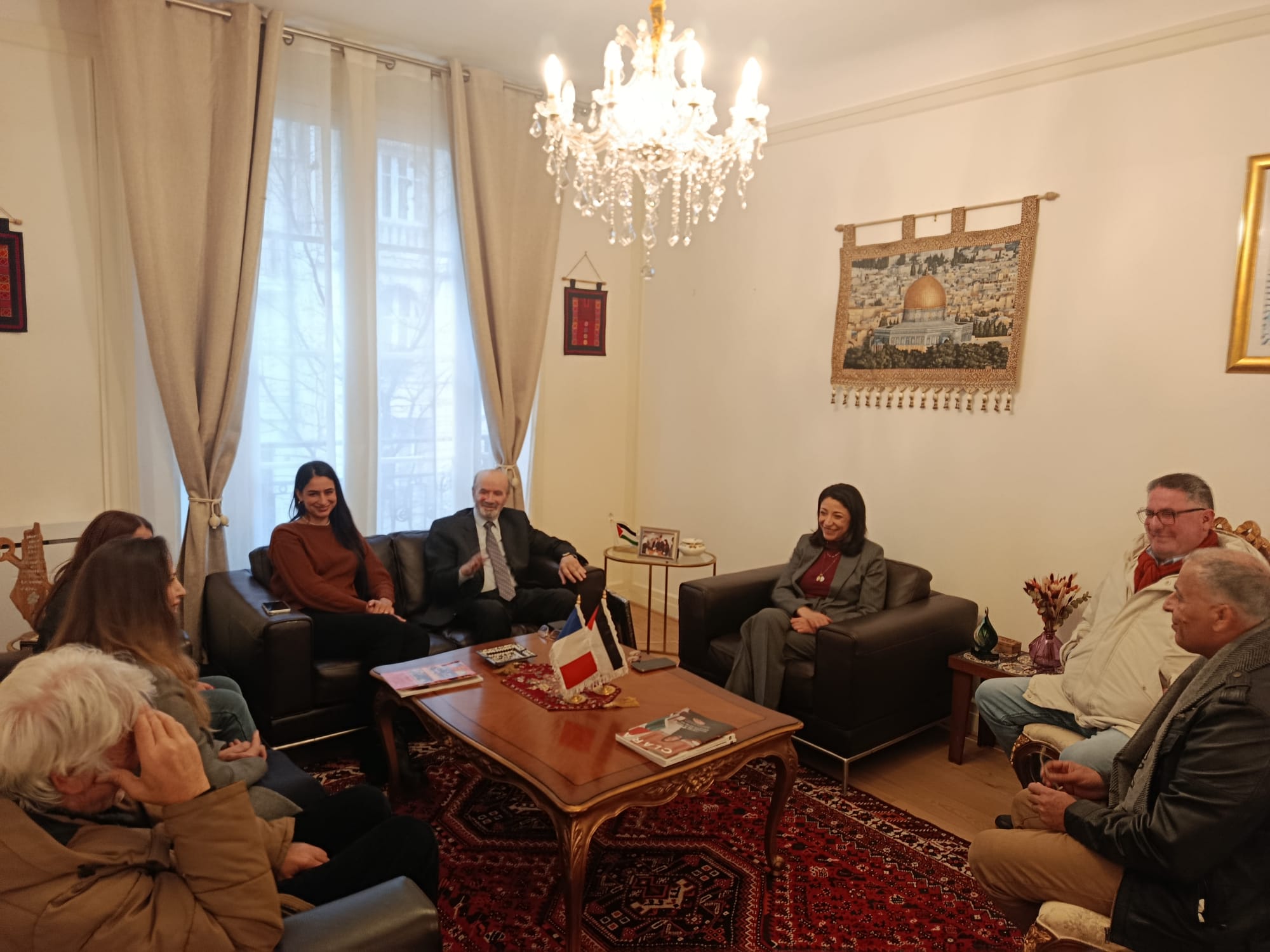 جرى عند الساعة الثانية عشرة والنصف من ظهر اليوم الجمعة 28 تشرين الثاني/نوفمبر 2025 لقاء أخوي في سفارة دولة فلسطين في باريس بين سعادة السفيرة هالة أبو حصيرة والأستاذ علي المرعبي، مع وفد يمثل اتحاد الصحفيين والكتّاب العرب في اوروبا، ومؤسسة كل العرب الإعلامية ومركز ذرا للدراسات والأبحاث.
