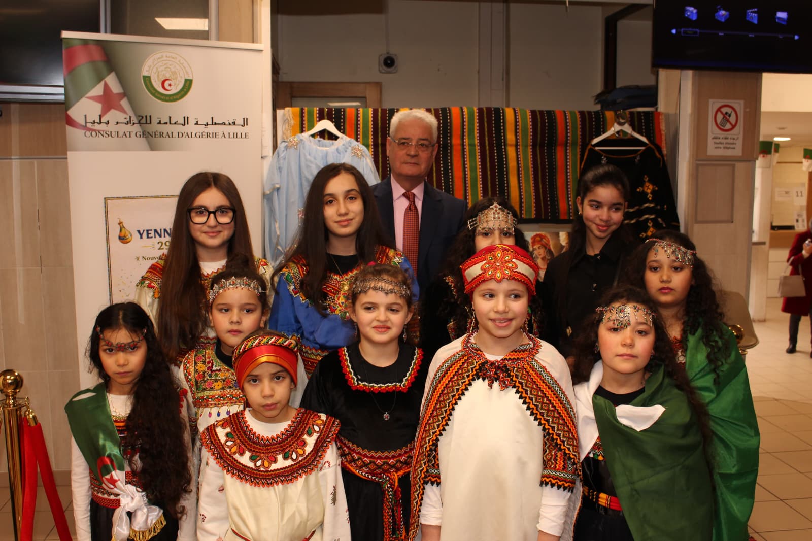 في إطار حرصها على ترسيخ الهوية الوطنية والحفاظ على الذاكرة الثقافية لدى أفراد الجالية الجزائرية بالخارج، احتفلت القنصلية الجزائرية العامة في مدينة ليل بشمال فرنسا، بمقرها وعلى رأسها القنصل العام السيد محمد اوزروحان بيناير، وذلك في أجواء مفعمة بالبهجة والاعتزاز بالتراث الوطني.